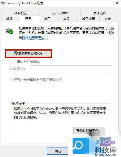 4. 在新跳出的选项中选择“共享”这个选项卡,之后点击“更改共享选项”;