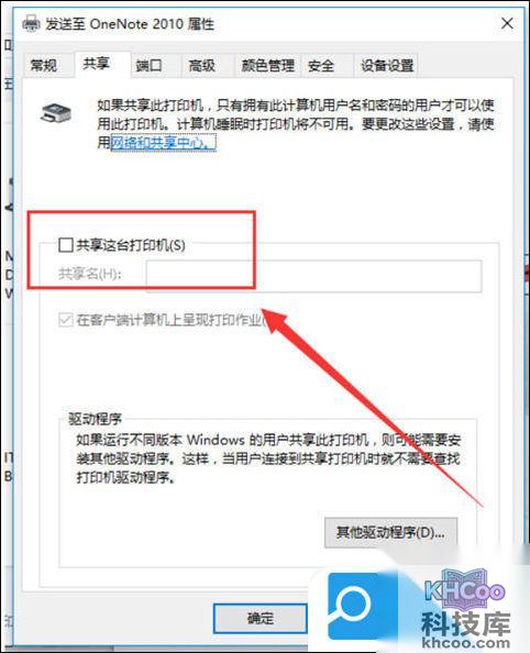 7. 进入到了该打印机的共享设置页面了,然后在共享选项卡里将“ 共享这台打印机 ”勾选上,然后点击确定就可以啦;