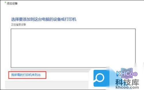2.然后我们直接选择添加打印机和扫描仪,默认会自动搜索已连接打印机,若长时间未找到设备,我们可以选择“我所需的打印机未列出”选项;
