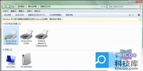 1. 打开打印机和传真的界面,FX DocuPrint C3055打印机显示脱机状态;