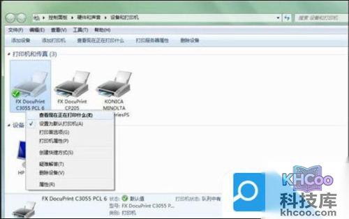 2. 右击FX DocuPrint C3055打印机图标,选择查看现在正在打印什么;