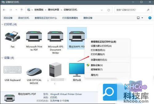 4. 接着我们在选中“打印机属性”功能;
