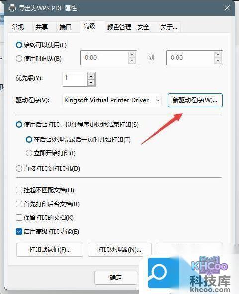 5. 在上方的窗口中我们选择“高级”,接着选择“新驱动程序”;