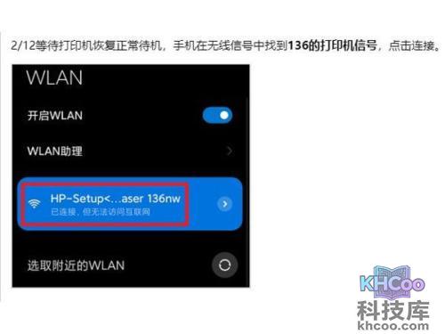 2、在手机设置中打开wifi,并连接找到136的打印机信号。