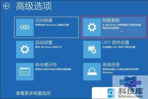 3、高级选项下,点击【 卸载更新( 从 Windows 中移除最近安装的质量更新或功能更新 ) 】;
