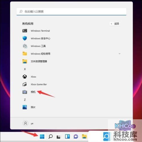 3、当然,也可以在开始菜单中的所有应用中,找到并点击打开相机应用;