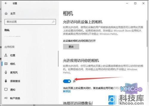 允许应用访问你的相机,如果允许访问,你可以使用此页面上的设置选择哪些应用可以访问你的相机。如果拒绝访问,则会阻止应用访问你的相机(不会阻止 Windows Hello)