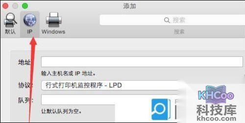 4、添加窗口,选中通过IP地址添加打印机;