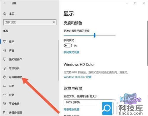 进入系统之后,往下滑,找到电 源和睡眠选项。