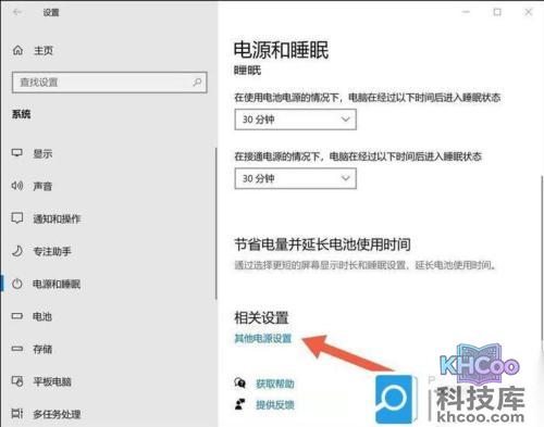 进入电源和睡眠选项之后,往下滑,找到其他电源设置。