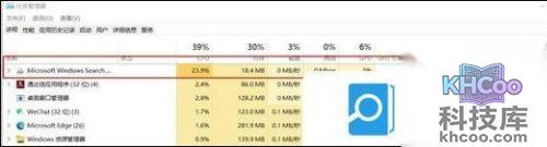 【Ctrl+shift+esc】打开任务管理器,查看进程下的Windows search选项(系统搜索功能),发现cpu占用非常高。下面是禁用方法: