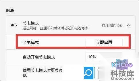 4、电池下,找到节电模式,再点击立即启用就可以了;