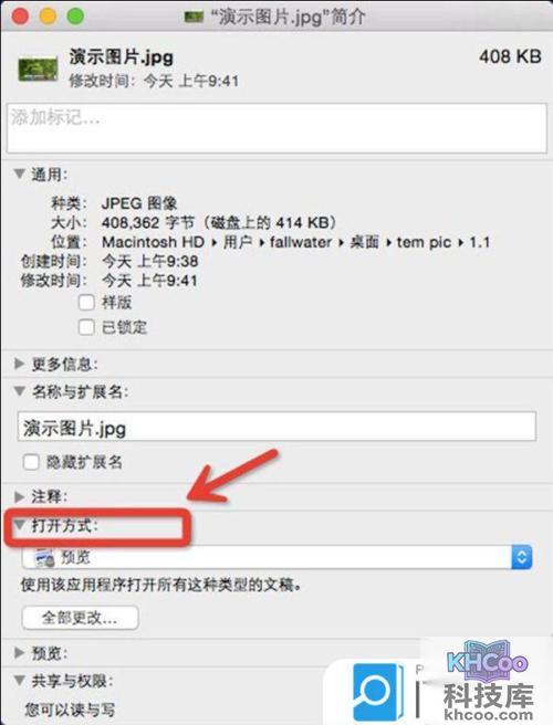 2.我们使用 command+i 快捷键(一般人我不告诉他),打开文件简介(也可以点击右建-显示简介),找到“打开方式”一栏里面,如下图所示:如下图: