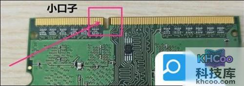 4. 插入内存条的时候需要注意:首先要确定内存条的正反面,在内存条上有一个小口(缺口),只需将此小口与内存条插座上凸起来的地方对齐即可;