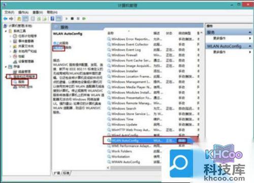 2. 进入管理列表后,依次点击服务和应用程序-服务,右侧找到WLAN AutoConfig双击打开改为自动,并且点击左上角的重启动即可。此法一般可解决wifi服务因错误导致无法启动。