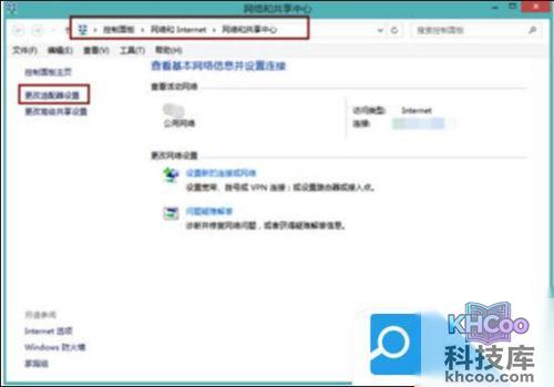 2. 在网络和共享中心里面点击左上角的更改适配器设置。进去以后一般可以看到3个连接,一个是蓝牙的,一个是有线的,还一个是无线wifi网络的;