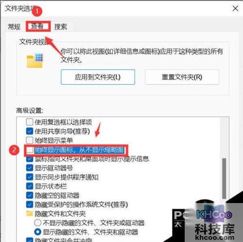 3. 这时我们取消勾选始终显示图标,不显示缩略图,然后点击应用选项;
