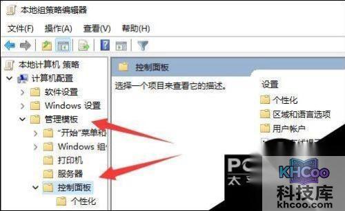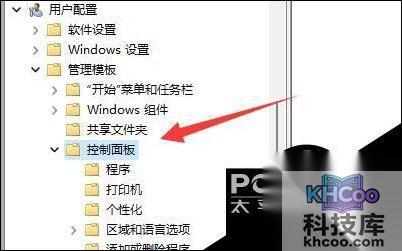 2. 接着打开左边“管理模板”下的“控制面板”。