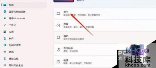 2. 进入到新的界面后,点击左侧栏中的“系统”选项,再点击右侧中的“显示”。