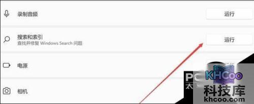 3. 找到“搜索和索引”,点击右侧的“运行”。