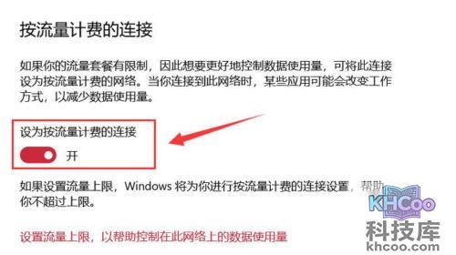 4、开启【 设为按流量计费的连接 】,此举将限制后台数据使用,包括自动更新。