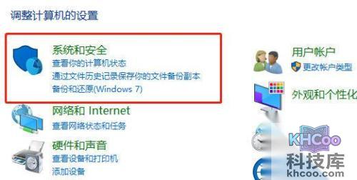 2、点击进入“系统和安全”