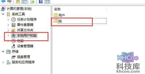 5、找到“本地用户和组”,再点击“组”