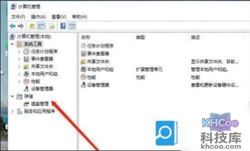 2、在打开的计算机管理窗口,点击磁盘管理打开。