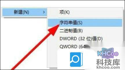 3、然后在右侧右键选择新建一个“字符串值”。