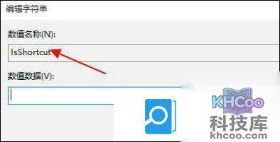 6、然后使用上述方法新建一个名为“IsShortcut”的字符串值。