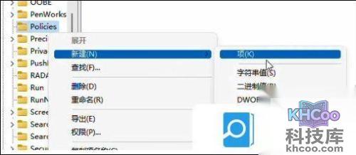 3、我们在Policies栏目右键新建项目,并且将其命名为【system】。