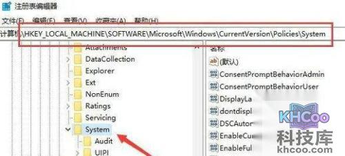 2、定位到hkey_local_MachinesoftwareMicrosoftWindowscurruntversionpoliciessystem注册表项
