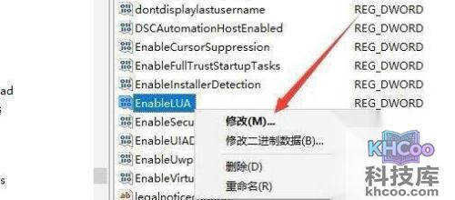 3、找到enablelua注册表键值