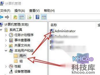 3、紧接着,在右侧的展示窗口找到“ Administrator ”的帐户,并且双击进入属性窗口的页面。
