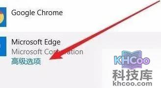 4、在右侧的应用列表中,寻找Microsoft edge浏览器项目,点击“ 高级选项 ”快捷按钮。