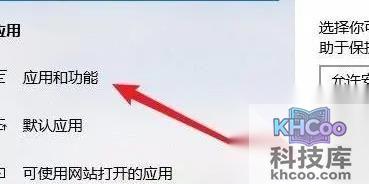 3、在新打开的Windows应用窗口中,选择左侧栏中的“ 应用和功能 ”。
