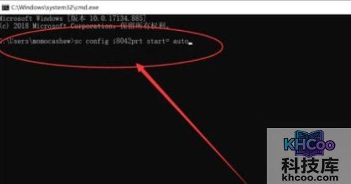 5、输入“sc config i8042prt start= auto”并回车,之后再重启电脑就可以了。