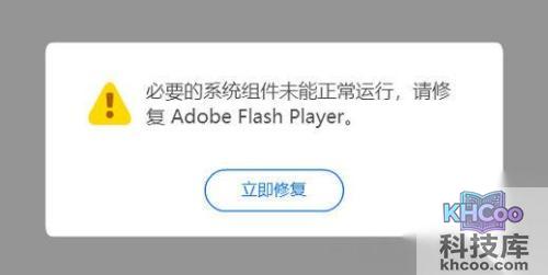 1、首先我们出现Flash错误,会提示必要的系统组件未能正常运行,请修复Adobe Flash Player。