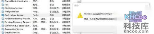 3、随后我们出现在服务界面中,我们在这里找到Flash Helper Service,然后右键启动,但是随后会报错。
