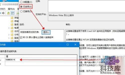3、对此进行双击,选择"哑粲�"→再次单击"显示"→输入"TERMSRV/*"→点击确定;
