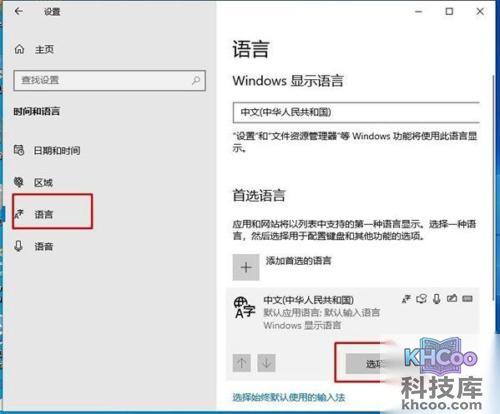 3、在左侧栏目里查找并单击区域与语言设定进入其中;再从右侧项目表中寻找并点击添加语言按钮点击进去。