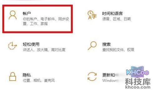 2、在Windows设置界面中,请选择" 账户 "选项。