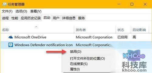 5、最后,找到关联名词为“ Windows DefenderNotification Icon ”的内容并将其进行彻底关闭即可。