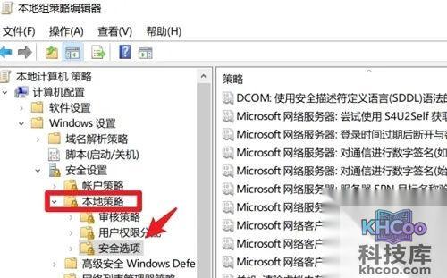 4、我们在安全设置下方,选择本地策略,然后再双击打开安全选项。
