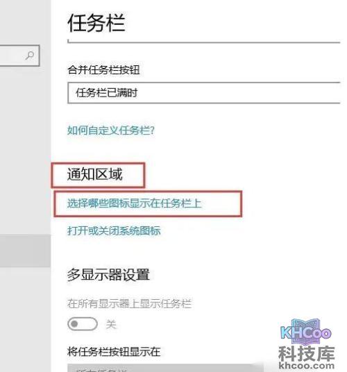 3、接下来,请下拉至通知区域,找到并按下“ 选择哪些图标显示在任务栏上 ”。