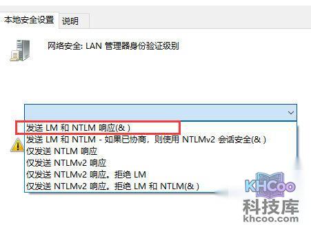 3、将验证级别改为 “发送LM和NTLM 响应(&)” ,最后点击应用,重启电脑即可。