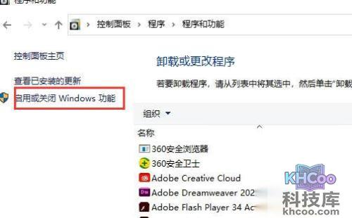 3、再点击“启用或关闭Windows功能”