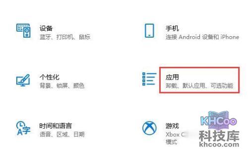1、点击开始,再点击设置,找到“应用”