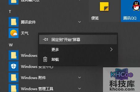 1、点击开始然后找到天气右键选择“固定到开始屏幕”