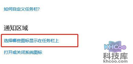 2、在“通知区域”下点击“选择哪些图标显示在任务栏上”